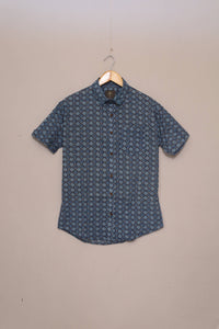 Ocean Wave Geo Print Unisex Cotton Shirt - S